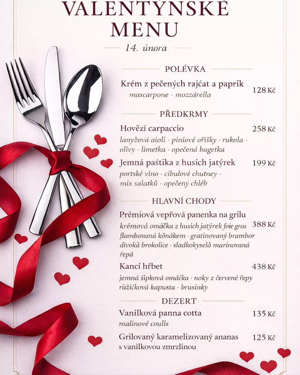Láska prochází žaludkem. Přijďte se o tom přesvědčit 14. února k nám! Připravili jsme pro vás menu, kterému dominuje jemná paštika s portským vínem a luxusní vepřová panenka s foie gras.